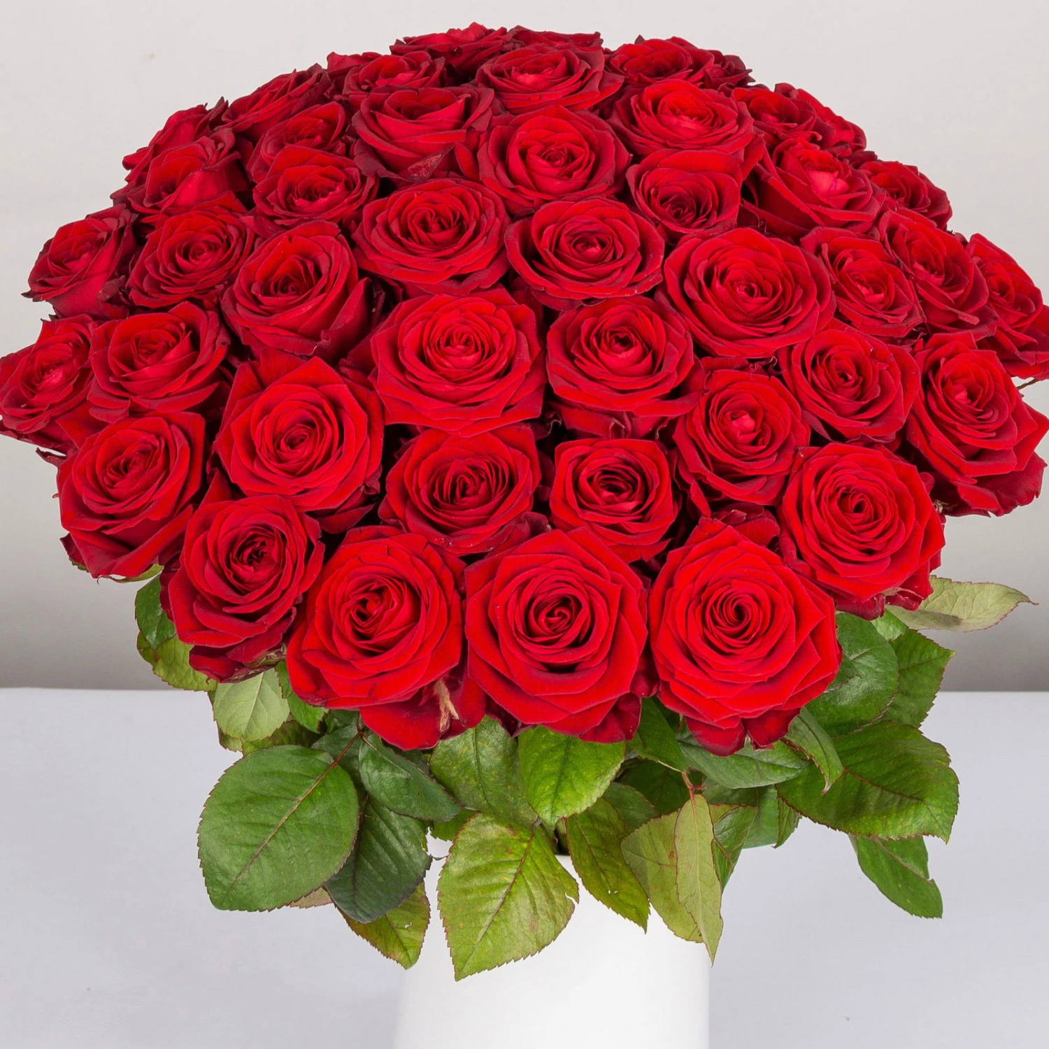 Blumenbund Mit Rosen ‚Red Naomi‘, 50er-Bund, Rot, Inkl. Gratis Grußkarte