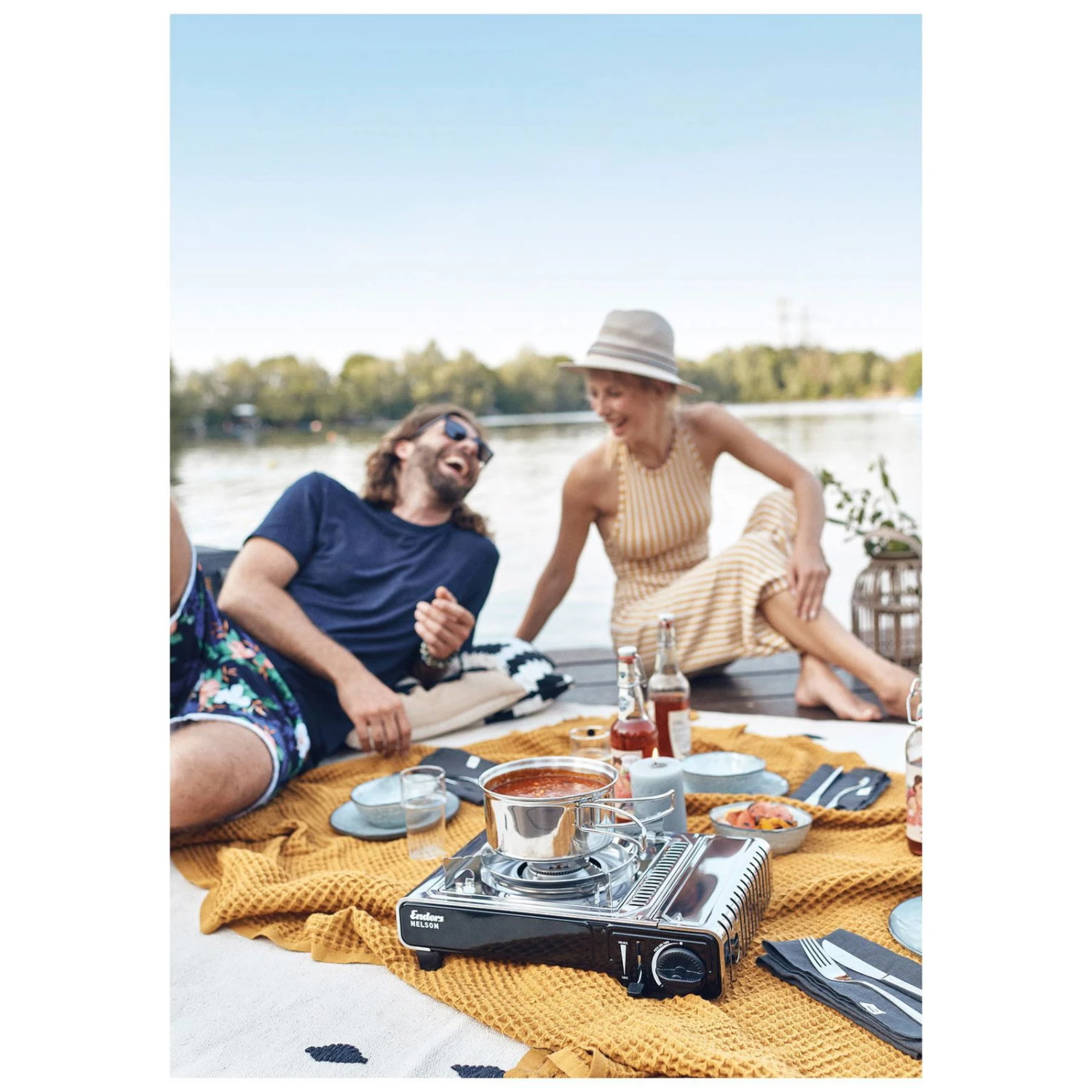 Der Kartuschenkocher ‚Nelson‘ von Enders ist Ihr leistungsstarker Begleiter beim Camping oder eine vielseitige Outdoor-Kochstelle im Schrebergarten. Der 2,2 Kilowatt starke Brenner ist stufenlos einstellbar, der Topfrost und das Gehäuse bestehen aus strapazierfähigem Edelstahl und um die Sicherheit kümmern sich der Überhitzungsschutz und die Überdruck-Sicherheitsabschaltung. Für bequemen Transport sorgt ein mitgelieferter Koffer.