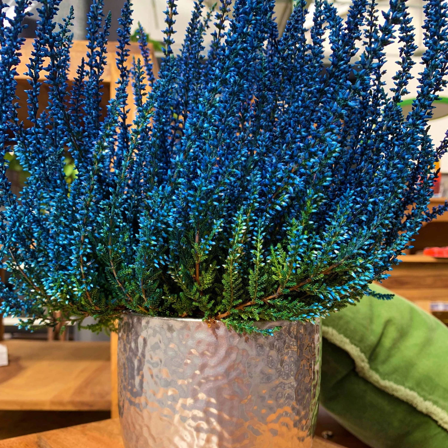 Die kleinen Blüten erscheinen bei der Knospenheide nur, wie der Name erahnen lässt, als Knospen und blühen nicht auf. Dadurch kann ihnen weder Wind noch Regen etwas anhaben und die farbigen Knospen bleiben bis in den Winter hinein schön. Diese Calluna ist mit pflanzenfreundlicher Farbe in Lila, Rot, Blau, Grün, Gelb, Weiß oder Orange gefärbt und bringt Abwechslung in Ihre Bepflanzung. Die Farben richten sich nach der Verfügbarkeit. Es werden mindestens 3 Farben in einem Set geliefert.