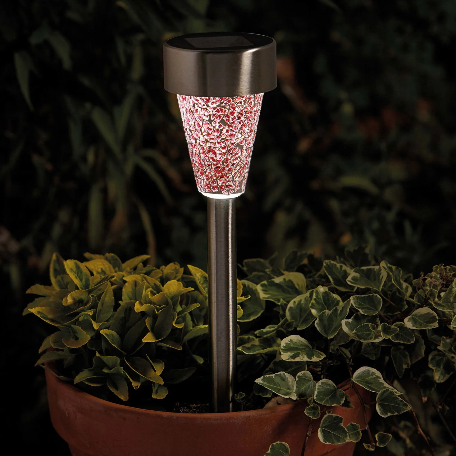 Mosaic Solarpfahlleuchte, Edelstahl / Glas, Silber / Bunt, 36 X 7,5 Cm, 6er Pack