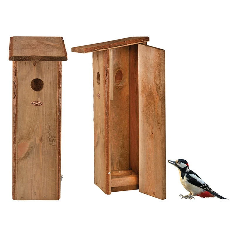Dieser Nistkasten aus Kiefernholz ist speziell für Buntspechte geeignet. Er verfügt über einen extra dicken, gewölbten Boden für die Eier und über eine verschlossene Einflugöffnung, welche die Spechte erst freipicken müssen. Im Winter erweist sich der Nistkasten zudem als idealer Zufluchtsort vor schlechtem Wetter.