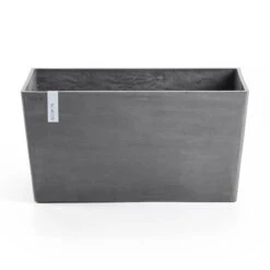 Als Raumteiler oder Abgrenzung macht der graue Pflanzentrog ‚Paris‘ von Ecopots im Innen- und Außenbereich eine gleichermaßen gute Figur. Dieser elegant designte Pflanzkasten in Betonoptik besteht aus recyceltem Stein- und Kunststoffpulver, wobei das Material frost- und bruchfest sowie UV-resistent ist.