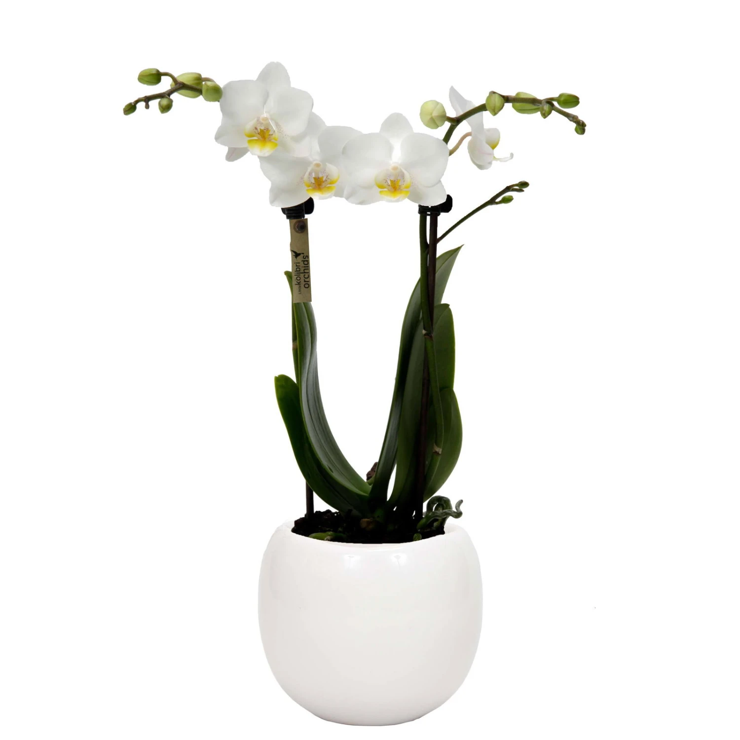 Phalaenopsis, Weißtöne, 2 Rispen, Topf-Ø 9cm, Mit Keramikübertopf, Höhe Ca. 30cm