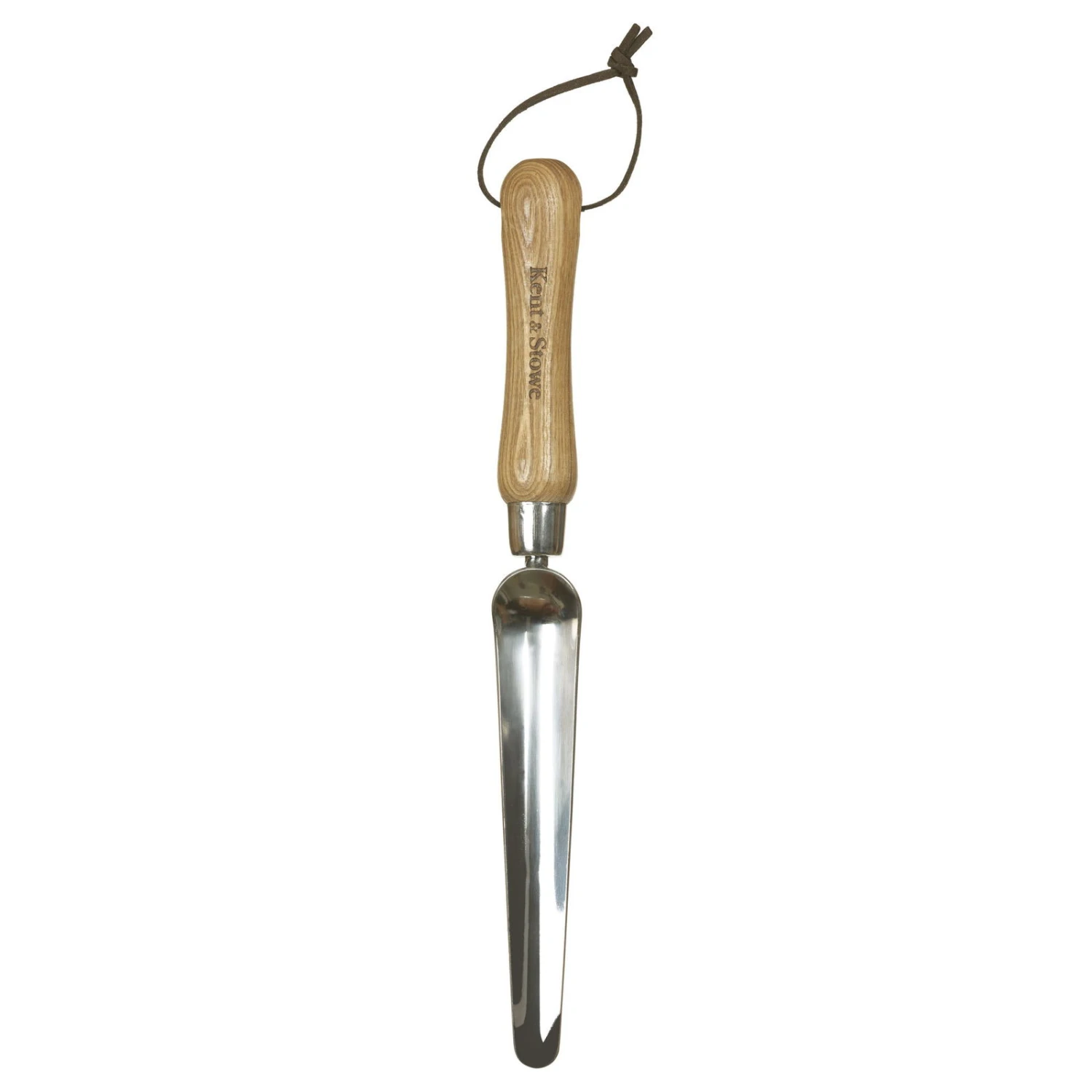 Schmale Pflanzkelle, Edelstahl, Eschenholz