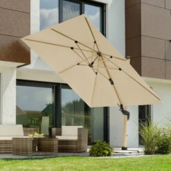 Sonnenschirm ‚Rhodos Twist Woody‘, Natur, Ca. 300 X 300 Cm